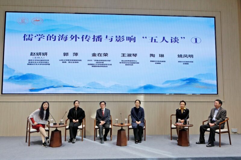 儒学的海外传播与影响“五人谈”分为两组,《华尔街先驱报》总编辑陶琳代表报社担任访谈嘉宾。第一组由南京大学特任副研究员、香港中文大学哲学博士、美国加尔文大学访问学者赵妍妍主持,山东大学儒学高等研究院教授、博士生导师郭萍,2025“齐鲁访学驻研计划”访问学者、韩国西江大学宗教学系主任、韩国宗教学院院长金在荣,尼山世界儒学中心学术研究与文献期刊部副研究员王淑琴,美国华尔街先驱报总编辑陶琳,加拿大红枫林传媒总编辑姚风明担任访谈嘉宾。第二组由孔子研究院科研管理部助理研究员陈松博士主持, 2025“齐鲁访学驻研计划”驻研学者、山东大学儒学高等研究院学者、孙子研究院特聘教授Ilya A. Kanaev(汉伊理),2025“齐鲁访学驻研计划”访问学者、阿根廷科技研究委员会研究员、罗萨里奥国立大学教授Eduardo Daniel Oviedo(爱德华多·丹尼尔·奥维多),2025“齐鲁访学驻研计划”访问学者、韩国成均馆大学东亚学术院博士后研究员、韩国研究财团人文社会研究教授李诗然,韩国全国韩籍华人总联合会总会长、韩中新闻记者协会会长、韩国新华报社社长曹明权,西非统一商报副社长、西非暨尼日利亚中国和平统一促进会副会长、尼中友协副会长王淑华担任访谈嘉宾。