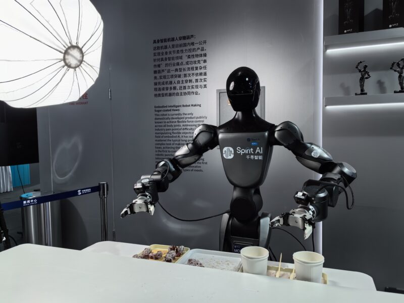 “这不仅仅是一台机器人在干活,而是一个‘团队’在服务。”现场工作人员向记者介绍,“去年我们看到的更多是单个机器人的‘单机炫技’,但今年,我们联合了智源研究院以及5家具身智能企业,打造了这个全自主全闭环的机器人餐吧。核心在于引入了更强悍的机器人大脑,让它能够控制不同‘出身’的机器人感知、理解、操作的能力,在同一个场景里完成跨品牌协同。”